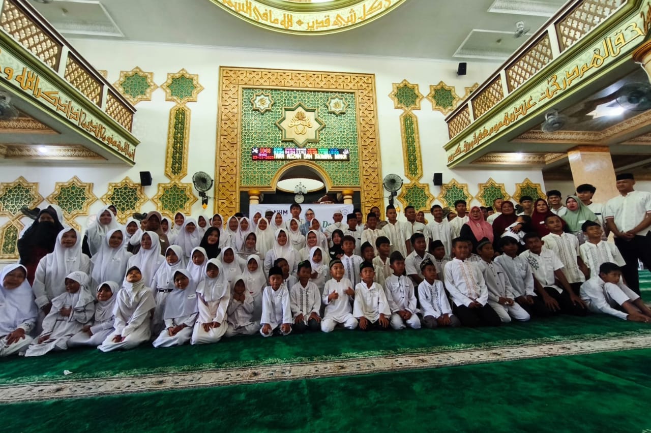 Kegiatan ditutup dengan sesi foto bersama serta pembagian bingkisan yang membuat anak-anak semakin antusias. Beberapa terlihat memeluk erat paket yang mereka terima, sementara yang lain tak berhenti tersenyum.