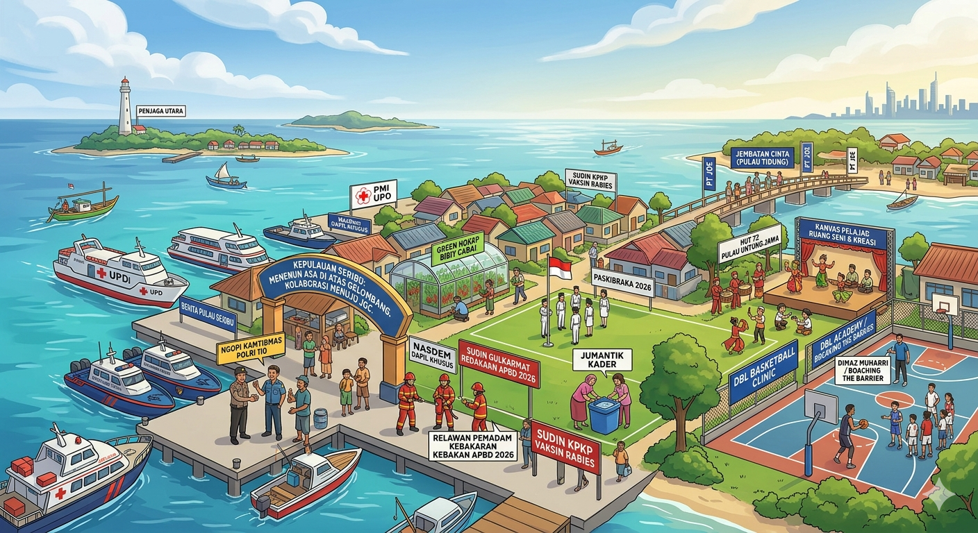 Kepulauan Seribu pada medio April 2026 ini menunjukkan wajah yang begitu dinamis. Gelombang kegiatan yang mengalir dari Pulau Sabira di ujung utara hingga Pulau Untung Jawa di sisi selatan bukan sekadar rutinitas birokrasi, melainkan sebuah simfoni pembangunan yang saling bertautan. Kita melihat sebuah potret wilayah yang sedang bersolek, tidak hanya secara fisik melalui aksi Pasukan Oranye, tetapi juga secara mental melalui penguatan kapasitas sumber daya manusianya.