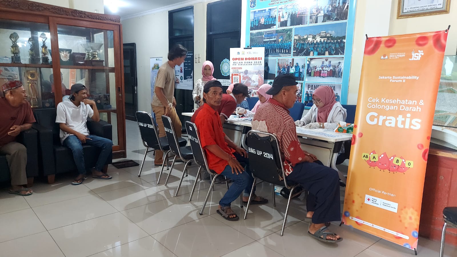 Palang Merah Indonesia (PMI) Kepulauan Seribu dan Puskesmas Kelurahan Pulau Panggang menyelenggarakan pelayanan pemeriksaan kesehatan gratis bagi nelayan. Layanan ini dilaksanakan di Pulau Pramuka, Sabtu (25/10/2025), sebagai bagian dari rangkaian kegiatan Hima Persis Jakarta Sustainability Forum (JSF).