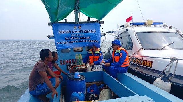 Sambil Ngopi, Satpolairud Polres Kepulauan Seribu Serap Aspirasi dan Jaga Keselamatan Nelayan